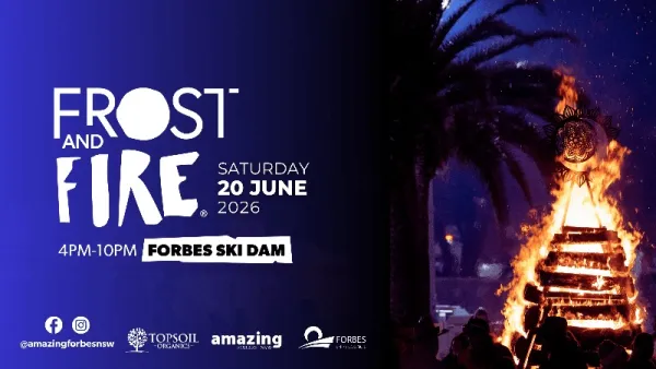 Frost and Fire is back out of hibernation for 2026, and it’s set to be bigger, bolder and hotter than ever! Gearing up for its seventh incredible year, the Central West NSW’s hottest winter event will light up Forbes Ski Dam on Saturday 20 June 2026, from 4pm–10pm.